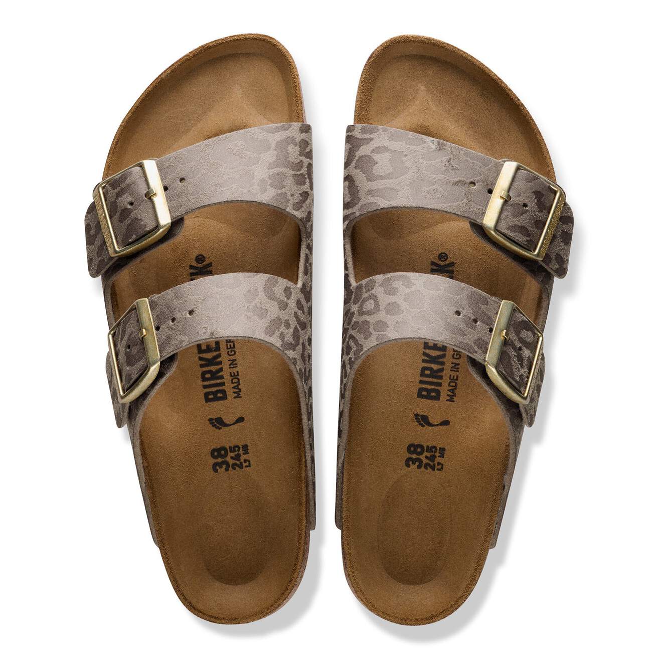 Bold by nature, timeless by design. The Arizona sandal in a subtle leopard print and classic hardware. Designed on a contoured footbed, feels comfortable in every spot.