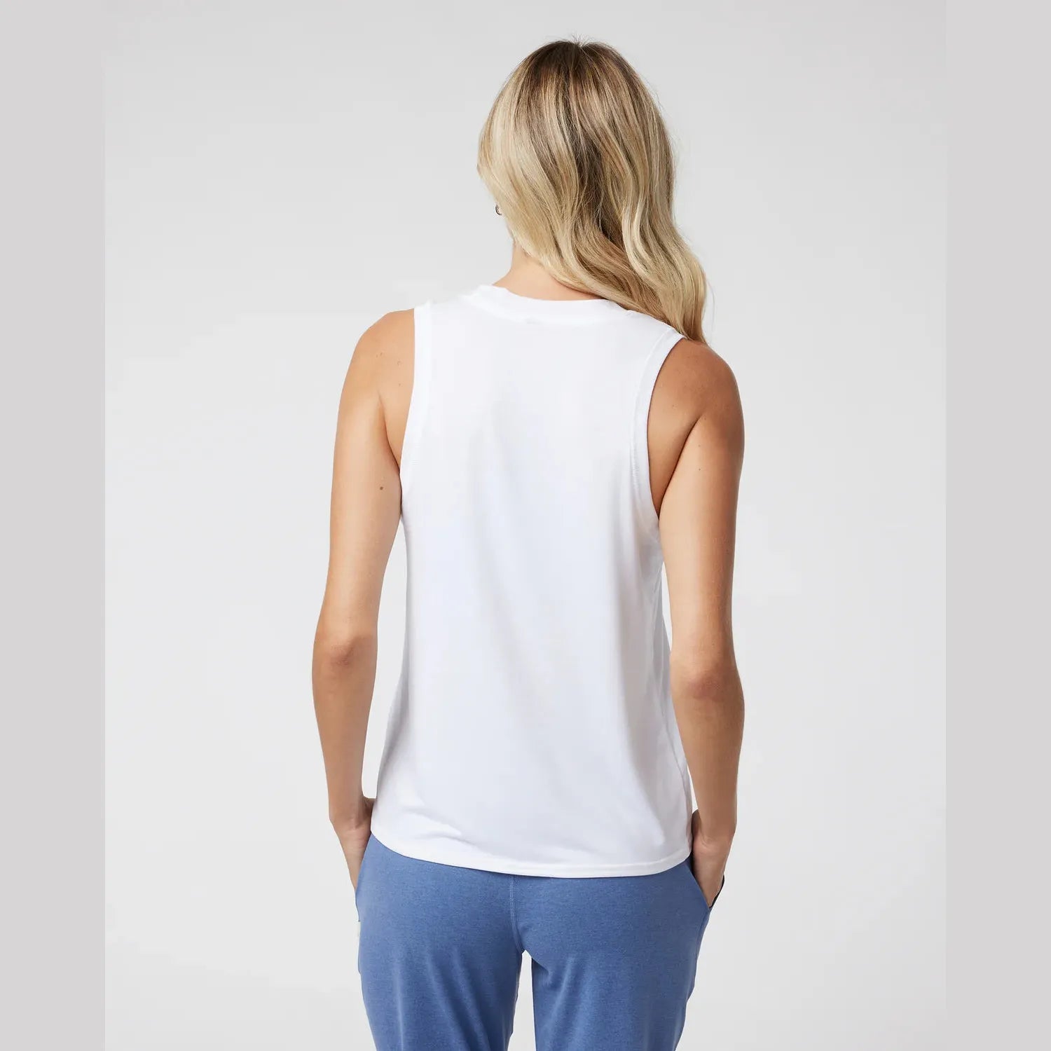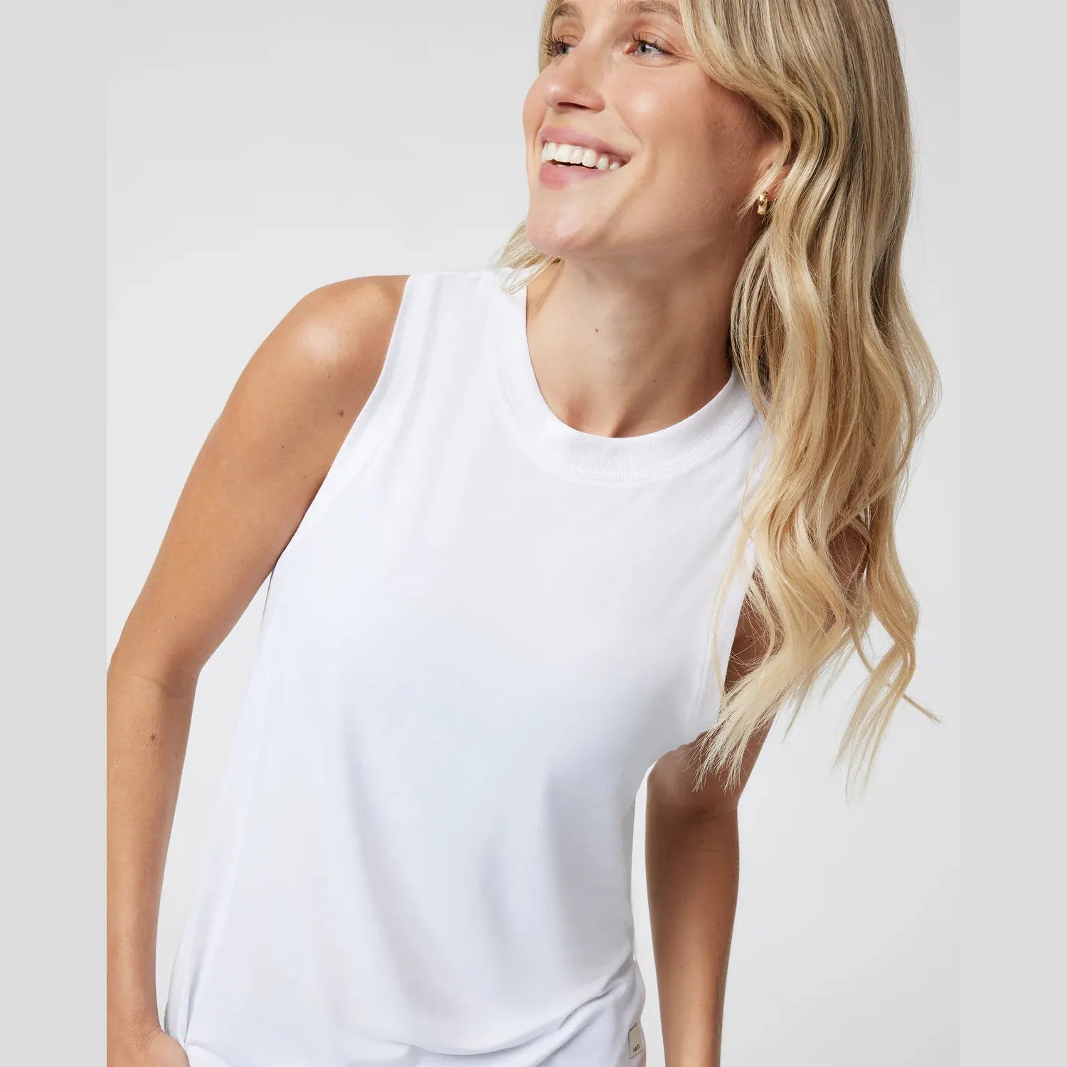 Our super popular Energy Tank gets an extended hemline on this longer version. Made with our super soft performance 4-way stretch moss jersey for moisture-wicking comfort.