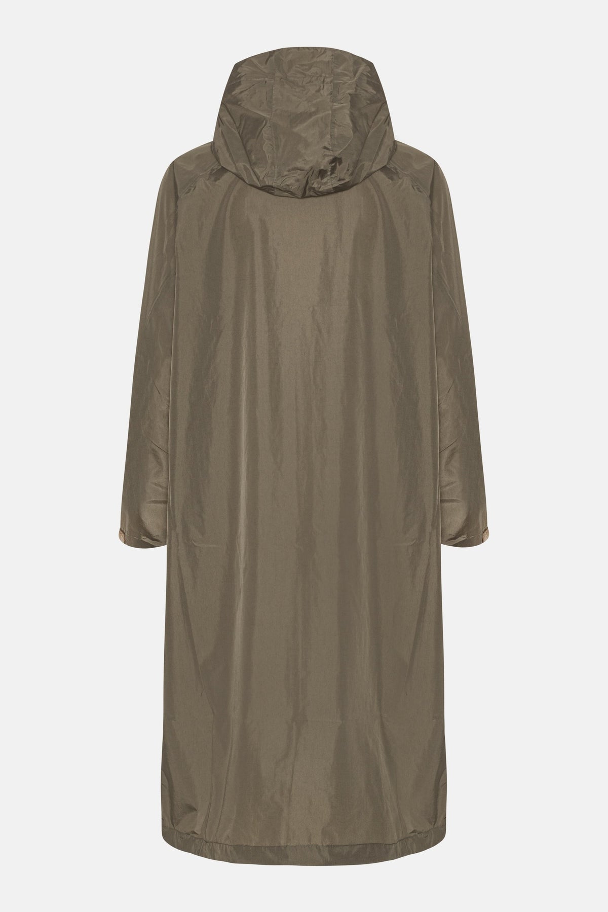 A long, lightweight raincoat with a generously cut silhouette and raglan sleeves for ease of movement. Adjustable hood and sleeve cuffs provide extra all-weather protection. Features a YKK 2-way Aqua-Guard zipper at the center front and discreetly concealed zipped pockets for a clean look. Black trims add a minimalistic, urban touch. Crafted from a light 2-layer fabric with a TPU membrane, it offers 8.000 mm waterproofing and 5.000 g/m² breathability. Finished with a water- and dirt-repellent coating for enhanced durability.