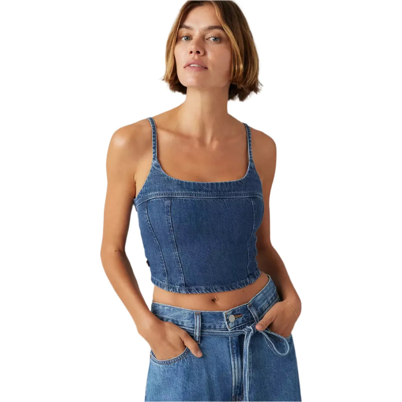 A timeless cami never goes out of style. Our Jadine Denim Cami Tank features a flattering scoop neckline, adjustable straps and a body-hugging cropped fit.