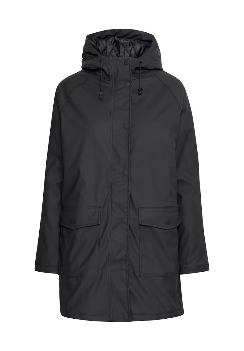 This women's raincoat offers a relaxed fit and modern longline silhouette, with a functional hood, full zip closure, and adjustable details for comfort. Ideal for versatile everyday wear in all seasons.