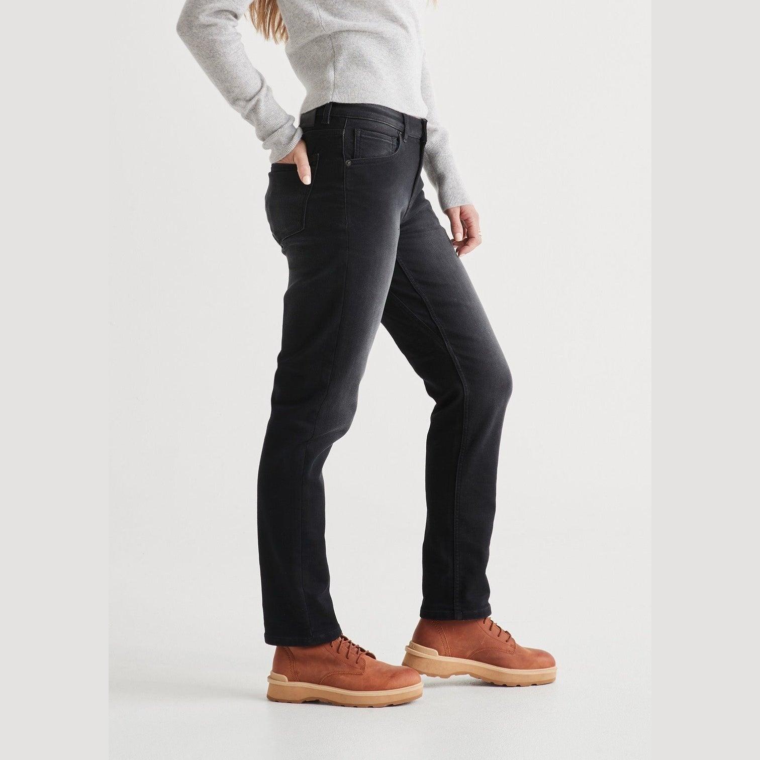 The Girlfriend fit is a nod to the slouchy look of a boyfriend fit while still having a flattering silhouette. Crafted in our stretch performance denim with interwoven fleece for hip-to-toe warmth, the Girlfriend is a mid-rise that fits loose throughout the hip and leg, with a cropped inseam for ease of styling. Finished with a water-repelling DWR treatment.