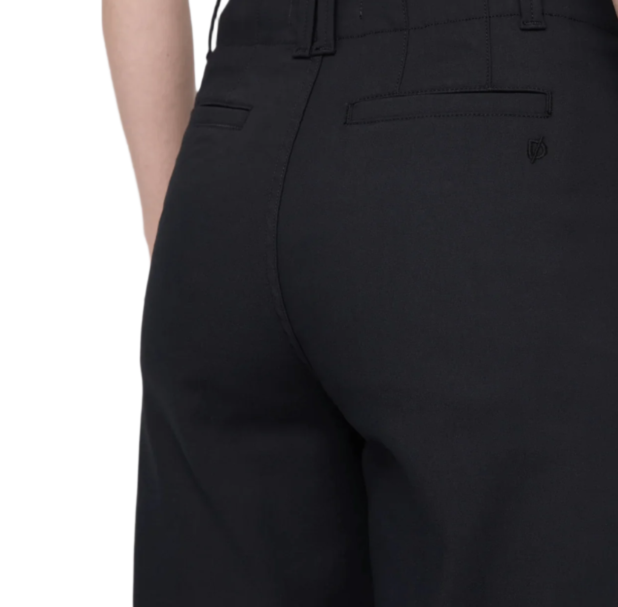 Meet the high-rise wide-leg trousers that are redefining chic. Slim through the hips with extra thigh room, these pants flare out for a full-length style that's perfect for work or jet-setting. With front and back darts and classic pockets, they flatter your figure while maintaining a streamlined look. Crafted from a breathable cotton blend with stretch and performance fibers, they offer a smooth, refined appearance and unbeatable comfort. Plus, natural corozo nut buttons and a zip fly add a sophisticated touch to this versatile wardrobe staple.