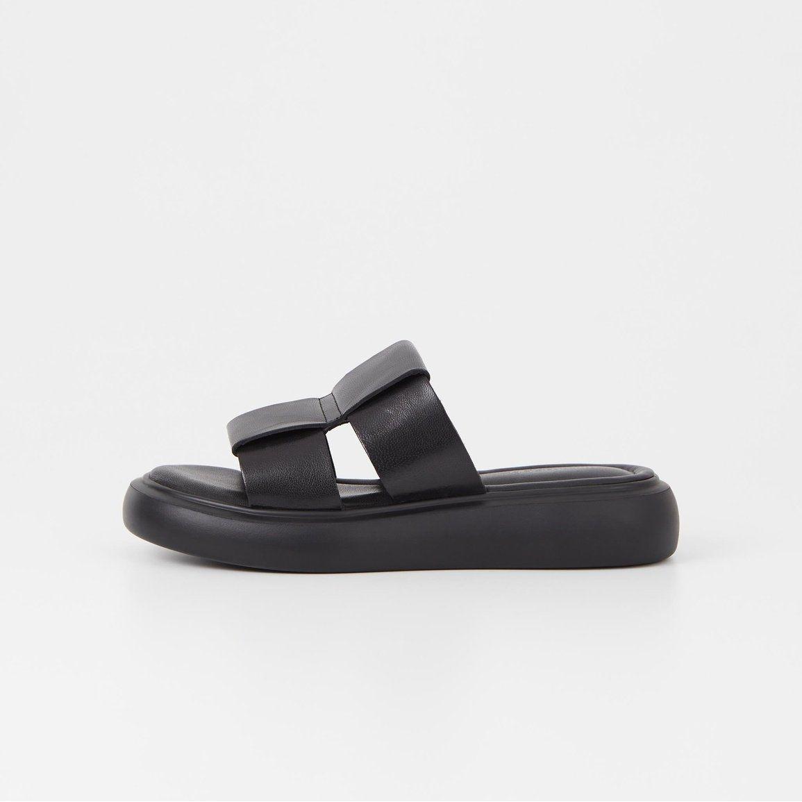 Blenda is the everyday sandals with a woven look, crafted in black leather with open toes, slip-in design and an interlaced upper. The solid, rounded outsoles measure 40mm.