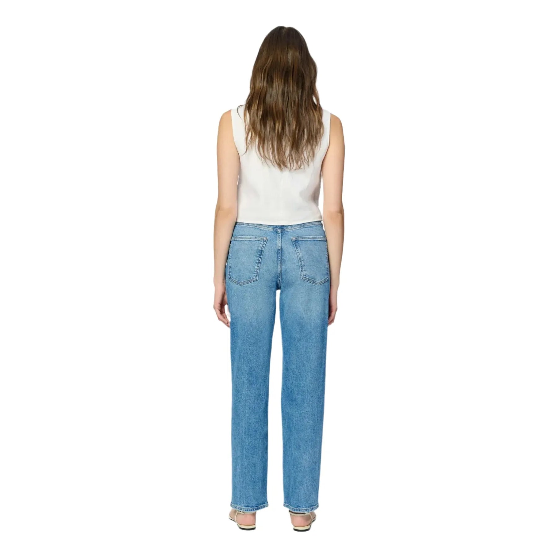We've perfected the high-rise, vintage-inspired straight leg jean. ASE flows straight from the thigh for maximum flattery and features a straight waistband, making it the perfect companion to your favorite crop tops and bodysuits.Everafter is a light, vintage wash with authentic fading throughout. It features silver hardware and a clean hem.